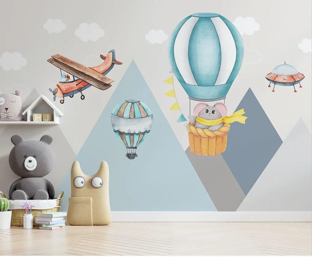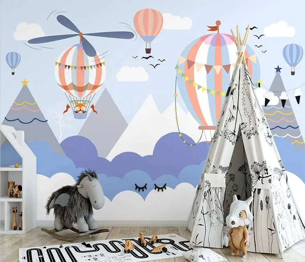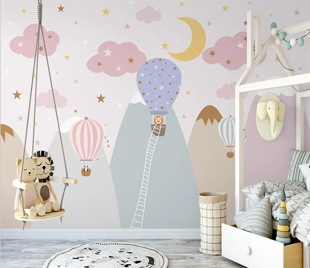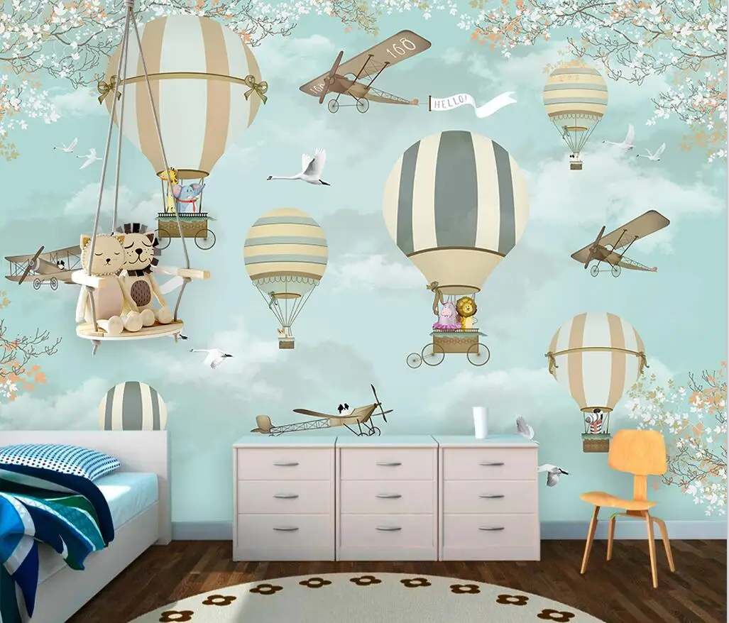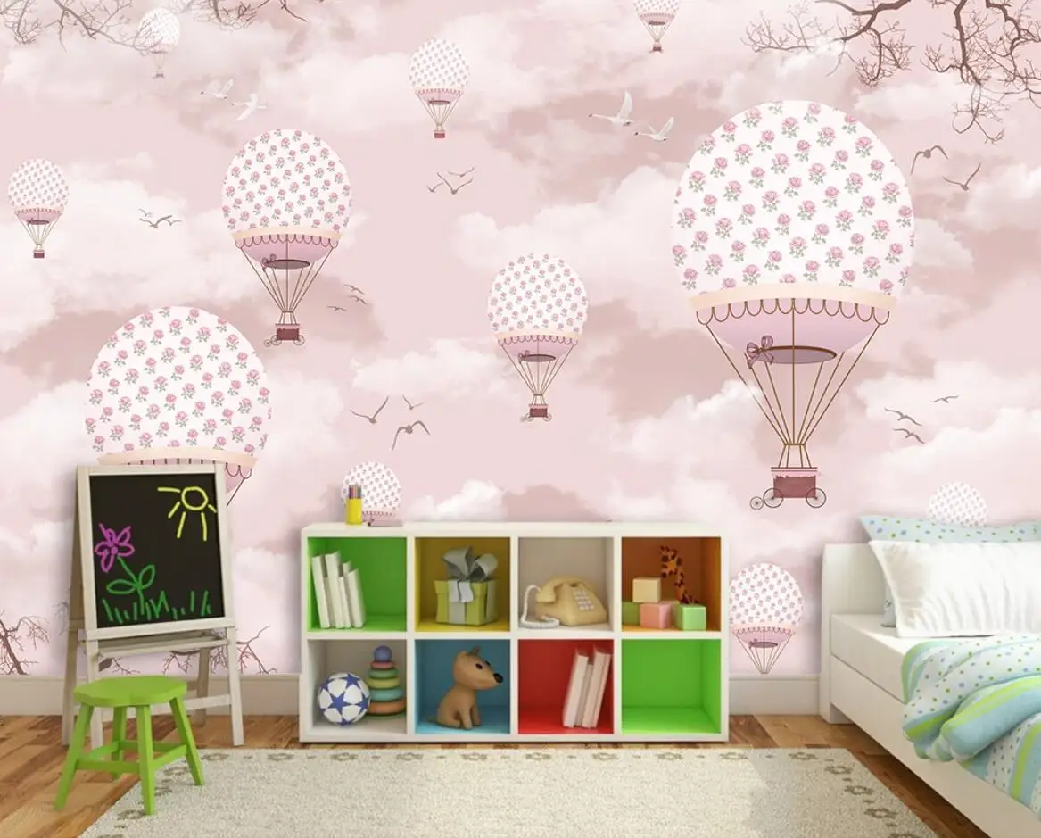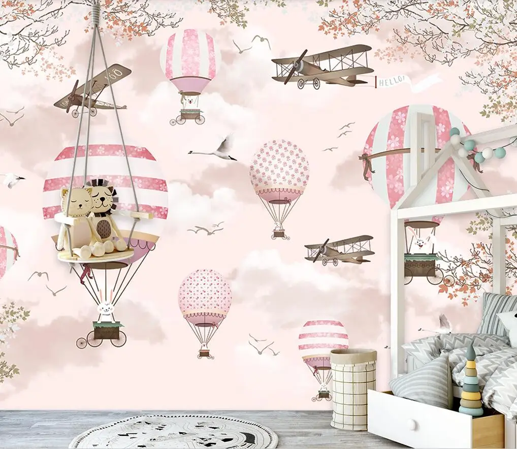 Custom 3d Wallpaper cartoon hot air balloon animal pink background Mural home decoration relief self-adhesive material Murals