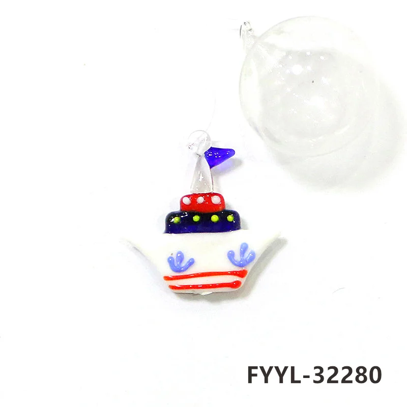 Custom Floating Glass Bubble Ball With Cute Cruise Ship Miniature Model Pendant Fish Tank Decoration Supplies Aquarium Ornaments