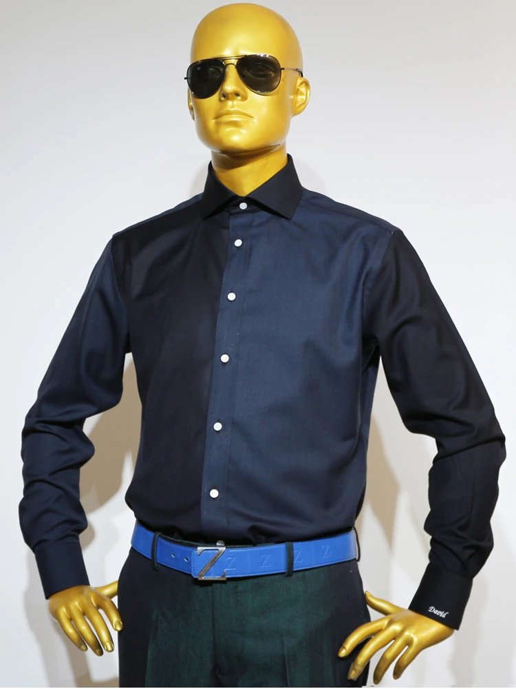 Custom Tailor Made Men’s Bespoke Dress Shirts Business Formal Wedding Blouse Wool Black Navy Fashion High Quality Free Ship