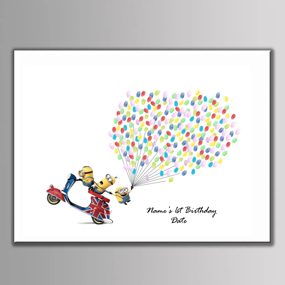 Customized Cartoon Baby Picture Shower Birthday Guest Book Fingerprints Tree Canvas Painting Children Communion Party Souvenir