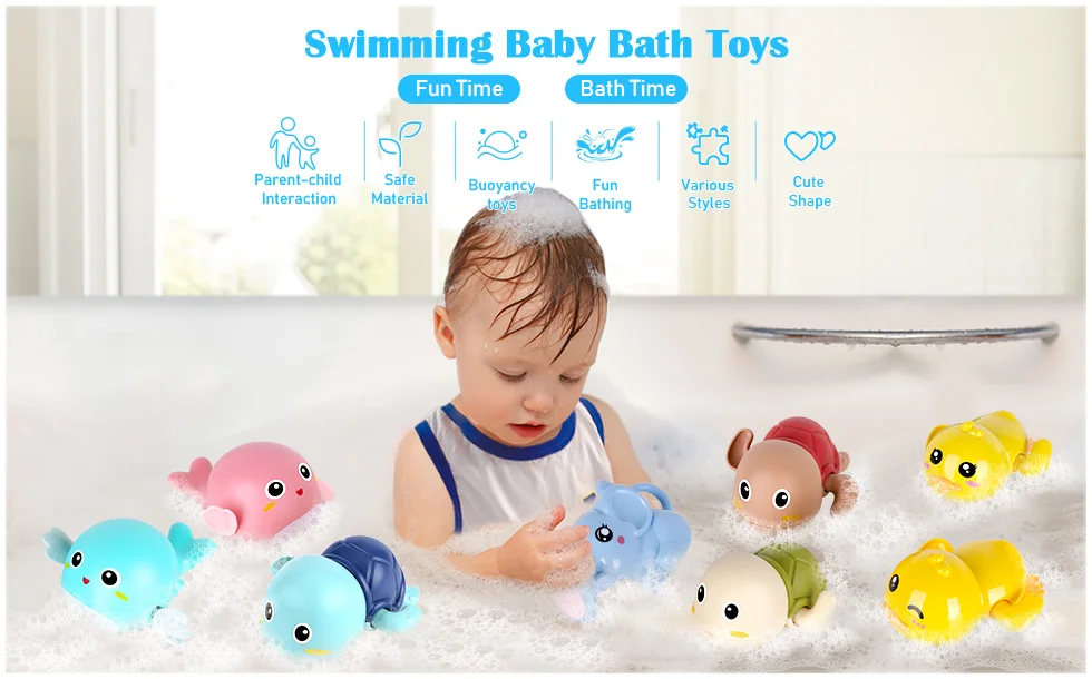 • 💦 Wind Up and Let Go: Wind up the Bath Toys, then put them into the water to see them flapping their flippers and propelling themselves through the water, making your little ones giggle with glee.