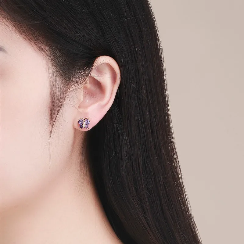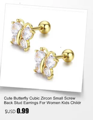 Cute Butterfly Cubic Zircon Small Screw Back Stud Earrings For Women Kids Children Baby Girls Gold Color Jewelry Aros Oorbellen