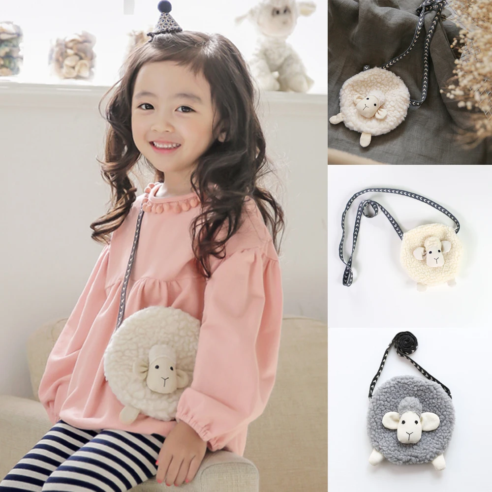 Cute Sheep Shape Crossbody Bag for Girls Toddler Mini Coin Purse Wallet Crossbody Bag for Kids Plush Soft Sweet Purses Organizer