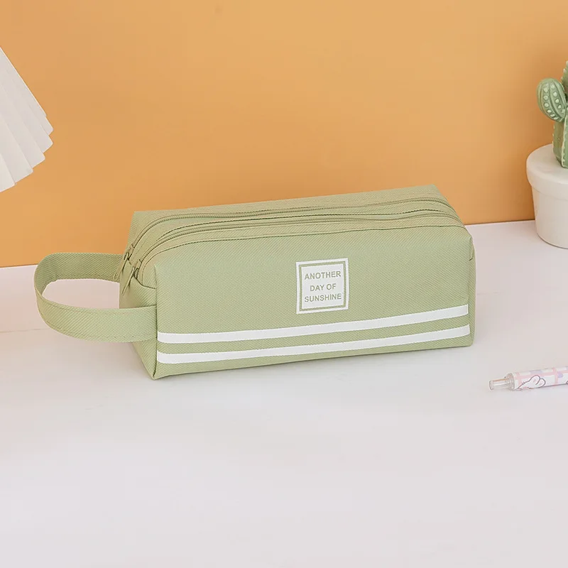 Cute Stripe Makeup Bag for Women Zipper Large Solid Color Cosmetic Bag Travel Make Up Organizer Bags Washing Pouch Fur Pen Pouch