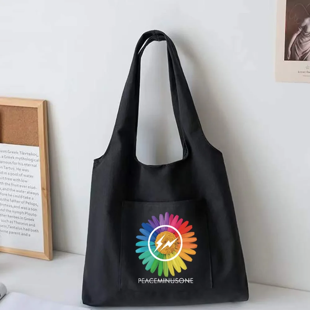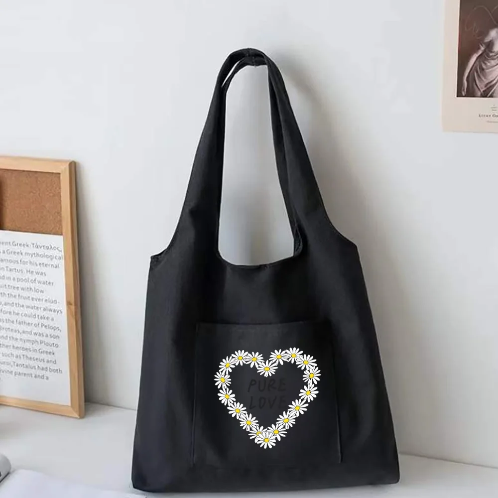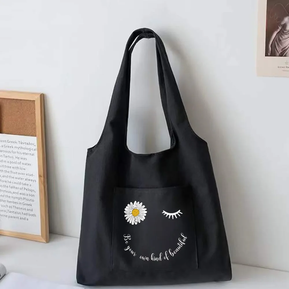 Daisy Series Canvas Vest Bag Women Shopping Bags High Capacity Commuter Tote Bag Supermarket Grocery Handbags Student School Bag