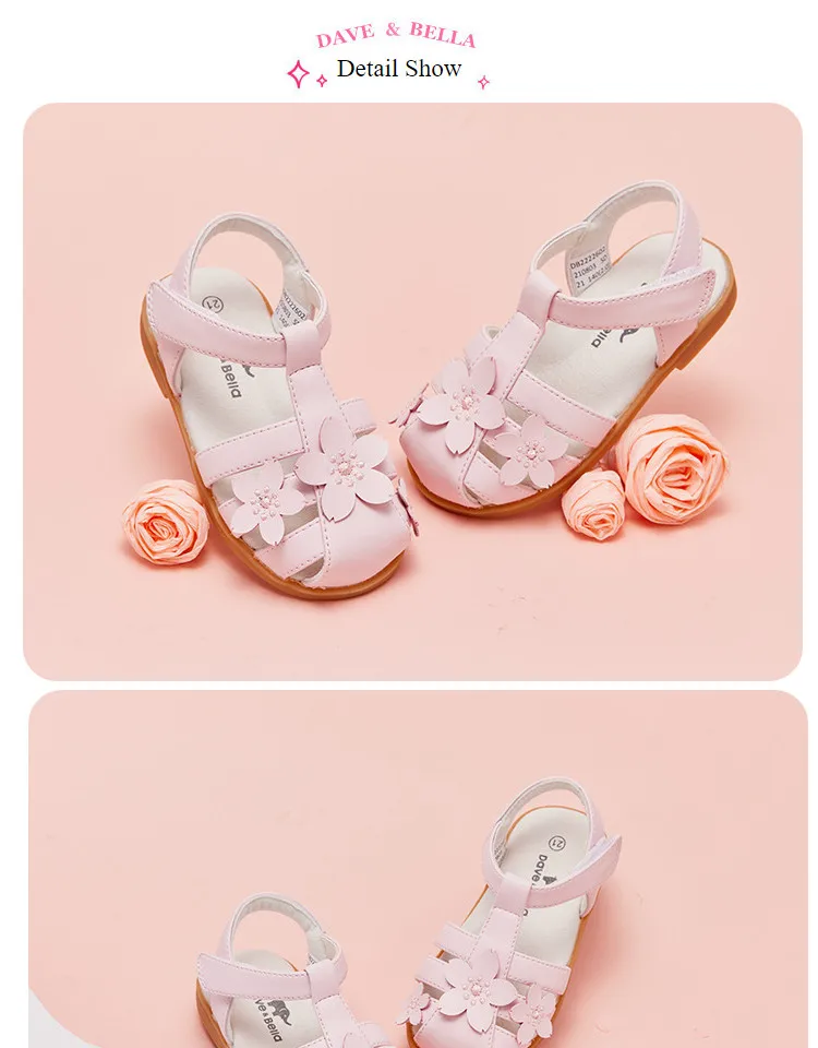 DB2222602 Dave Bella summer fashion baby girls floral appliques shoes cute children girl brand shoes