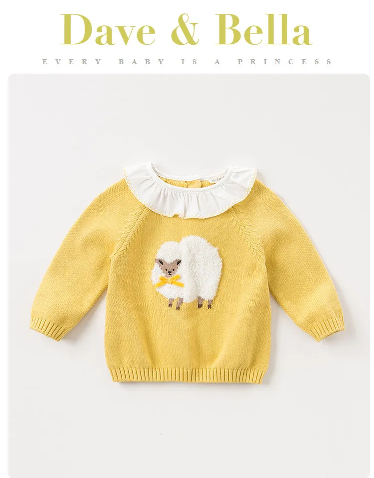 DBM11692 dave bella autumn cute baby girls cartoon knitted sweater kids fashion pullover toddler boutique tops