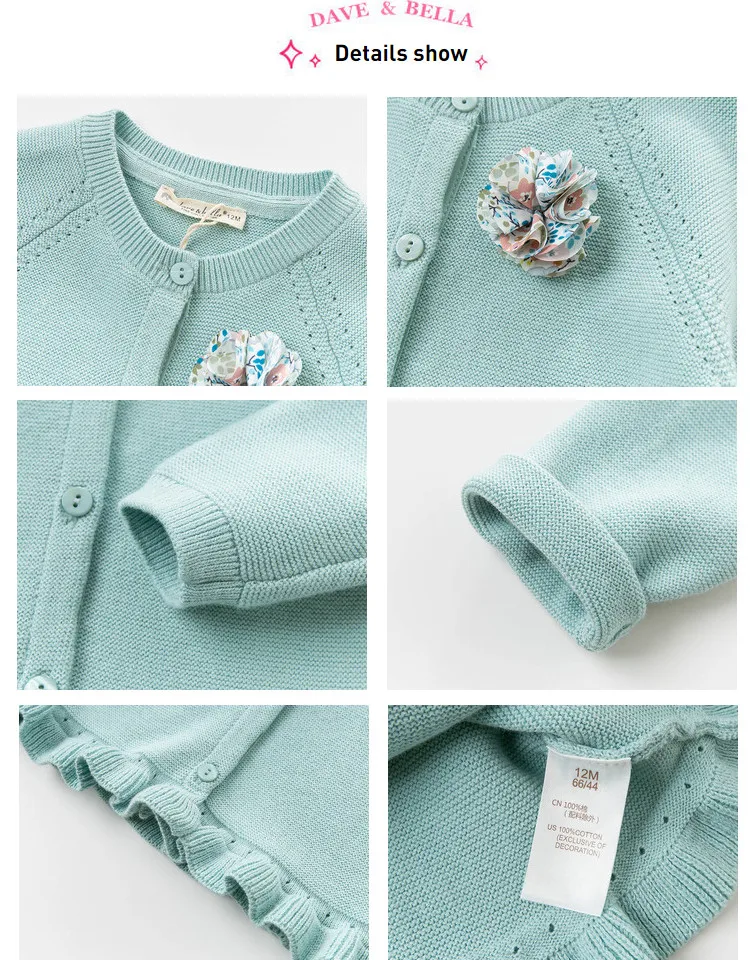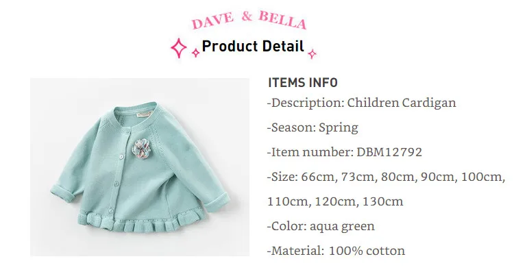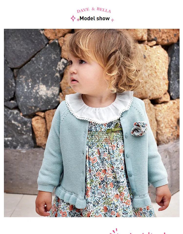 DBM12792 dave bella spring infant baby girls fashion appliques ruched cardigan kids toddler coat children cute knitted sweater