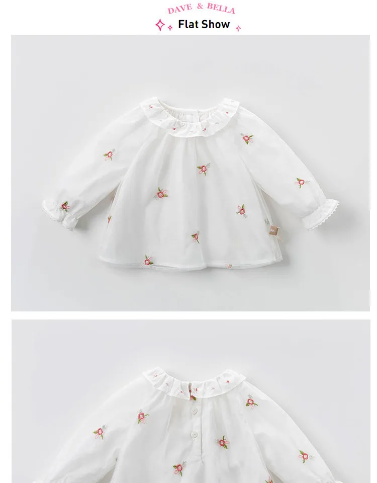 DBZ13491 dave bella spring baby girls cute floral embroidery mesh shirts infant toddler tops children high quality clothes