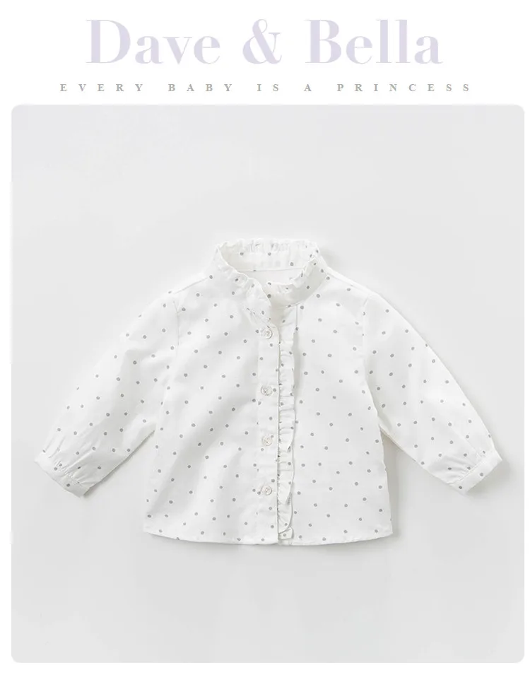 DBZ13505 dave bella spring baby girls cute dots ruched shirts infant toddler tops children high quality clothes