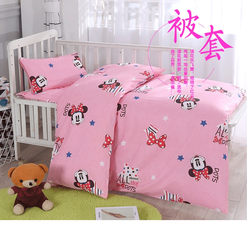 Disney 3PCS Baby cot 100% Cotton Bedding Sets Pink Minnie Mickey Mouse Princess Cartoon Quilt Cover Girls children 60x120cm cot
