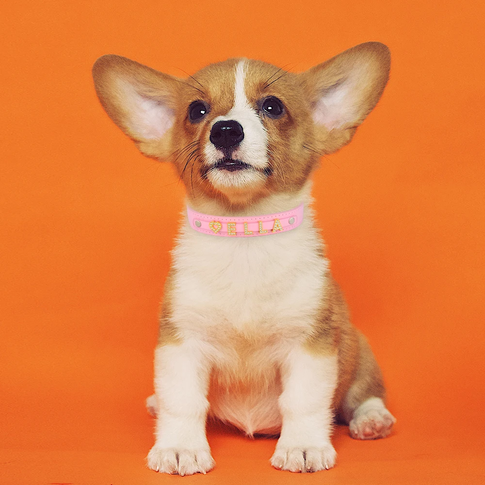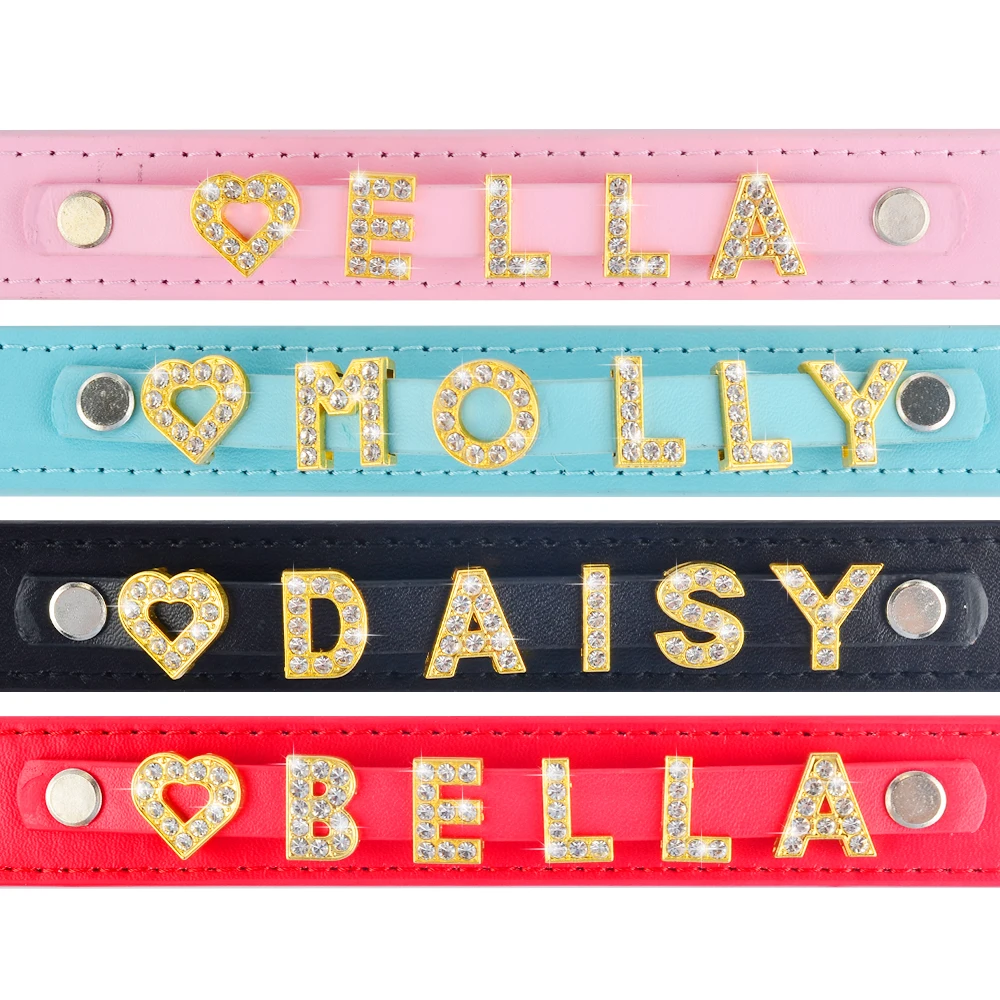 DIY Bling Personalized Dog Collar Rhinestones Leather Free Name Small Medium Pet