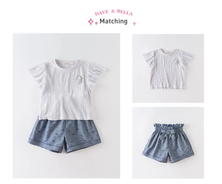 DKS13447-2 dave bella summer 5Y-13Y kids girls fashion bow print shorts children boutique casual kneel-length pants