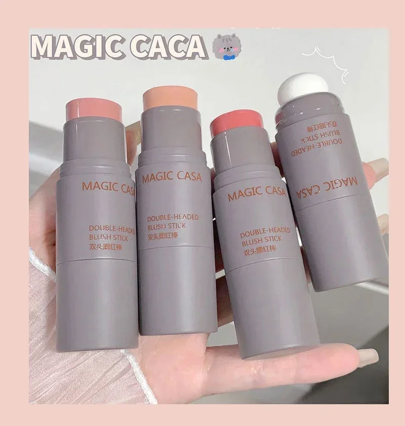 Double-ended blush stick, One end is paste, the other is soft sponge, One end of the paint, the other end to help the natural blending, 3 colors available, can be used for cheeks or lips, Carry around, one thing multi-purpose, easy to touch up makeup at any time. Long lasting moisturizing blusher stick, Create a vibrant and fashionable makeup look.