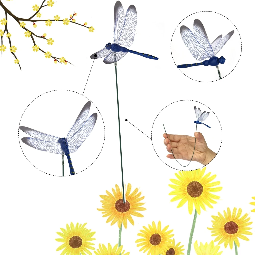 Dragonfly Stakes Yard Art Outdoor 3D Simulation Decorative Stakes Yard Plant Lawn Decor Stick Flower Pot Garden Decoration