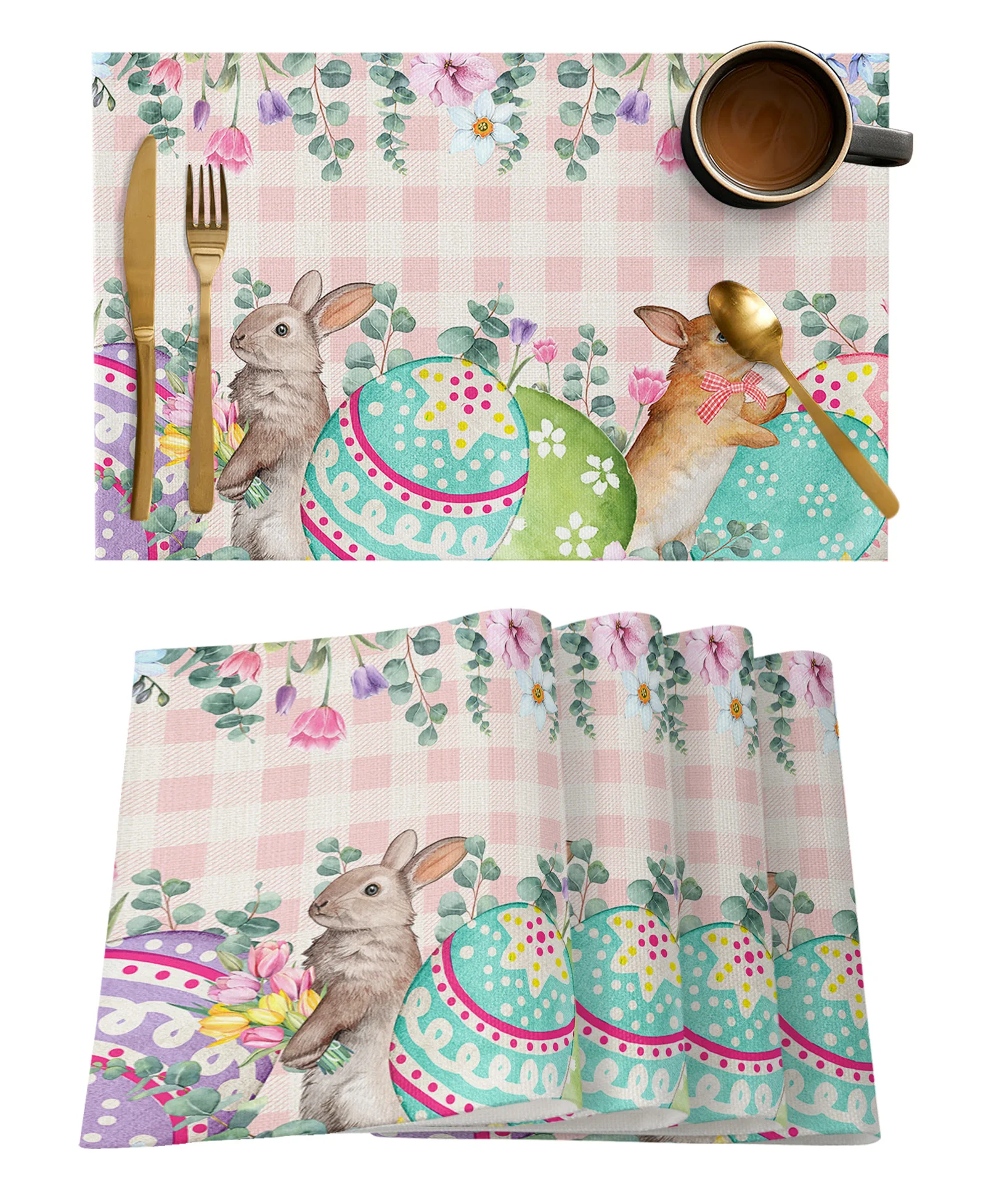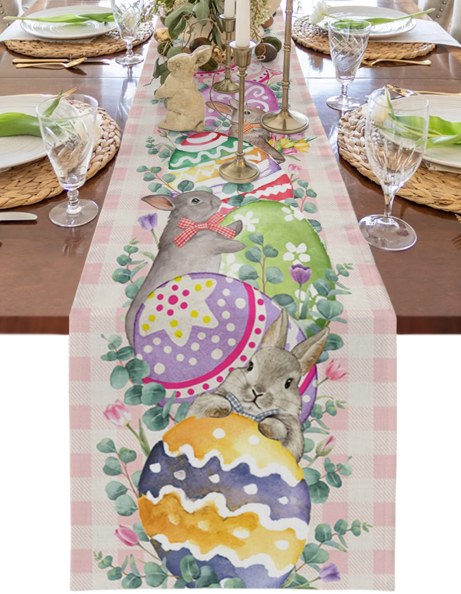Easter Spring Flowers Rabbit Eggs Table Runner for Dining Table Wedding Tablecloths Party Decor Table Mats Easter Decorations