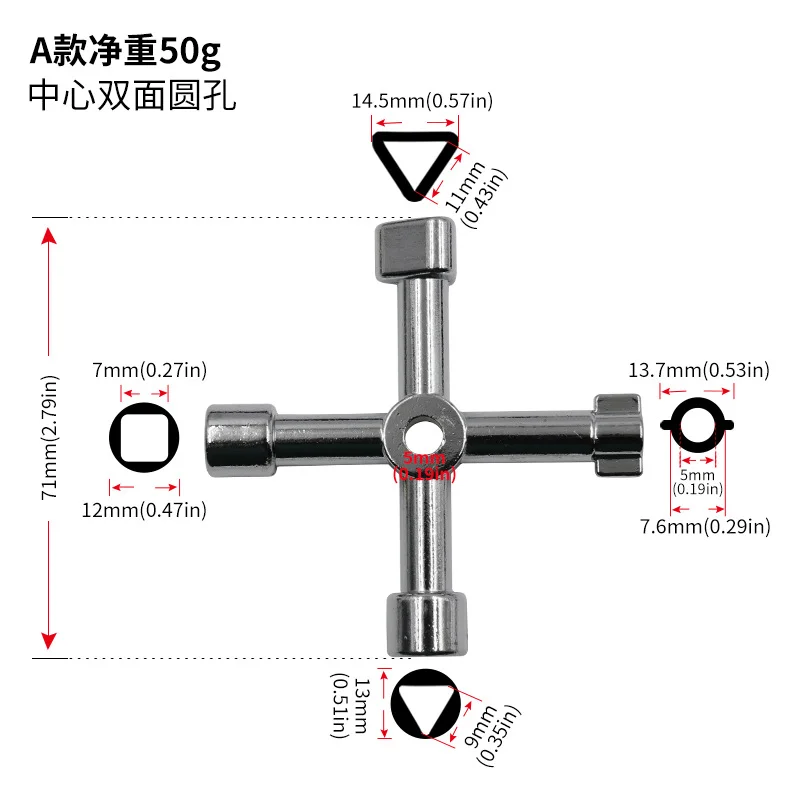 Electric Cabinet Car Elevator Cross Key Wrench Water Meter Valve Key Internal Triangle Wrench Multi-purpose Tool Portable