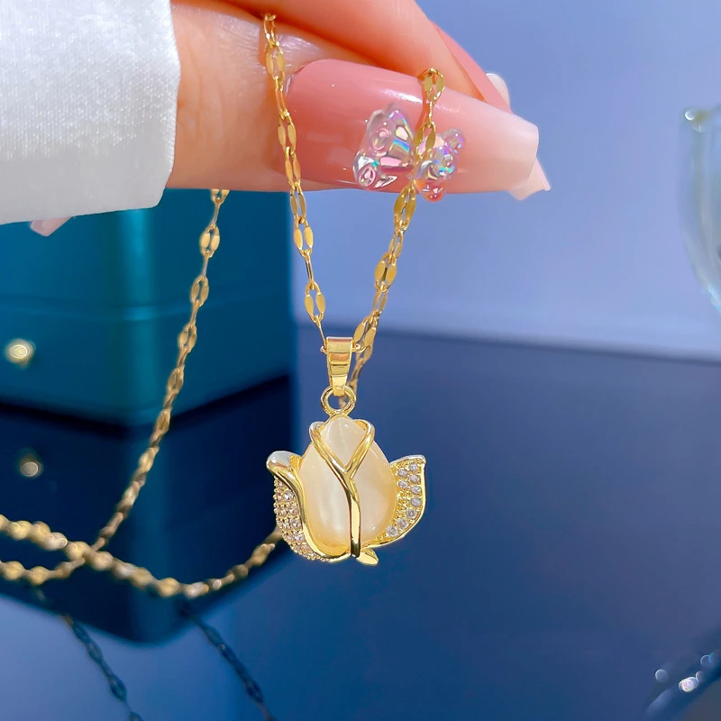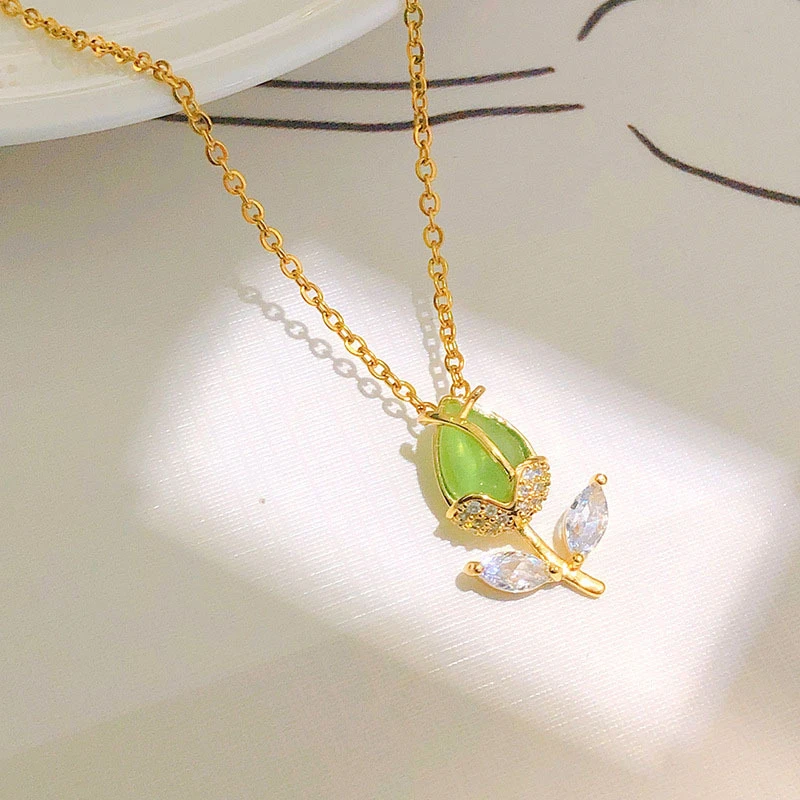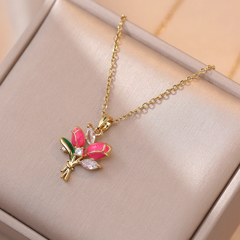 Elegant Crystal Flower Tulip Women Necklace Jewelry Pendant Chain Choker Korean Party Wedding Office Statement Gift Accessories