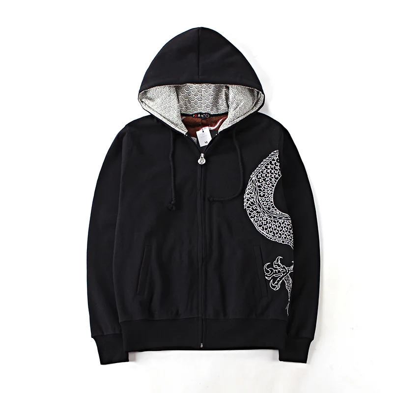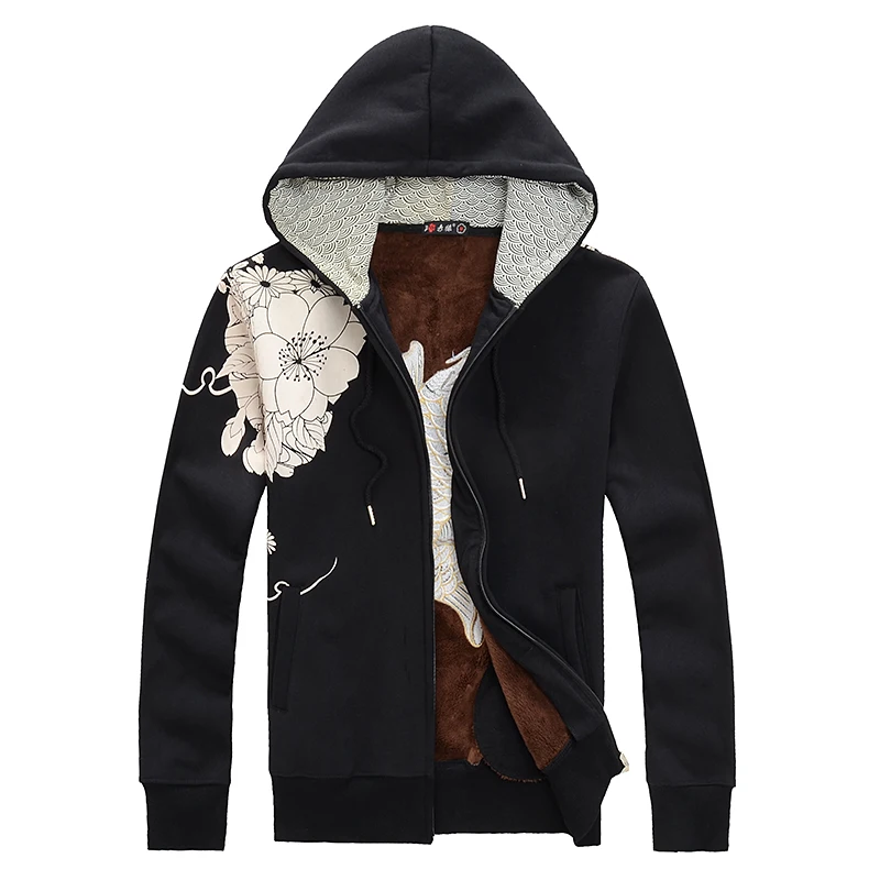 European and American fashion casual carp embroidery with velvet sweater men’s Chinese style cotton loose large size zipper warm