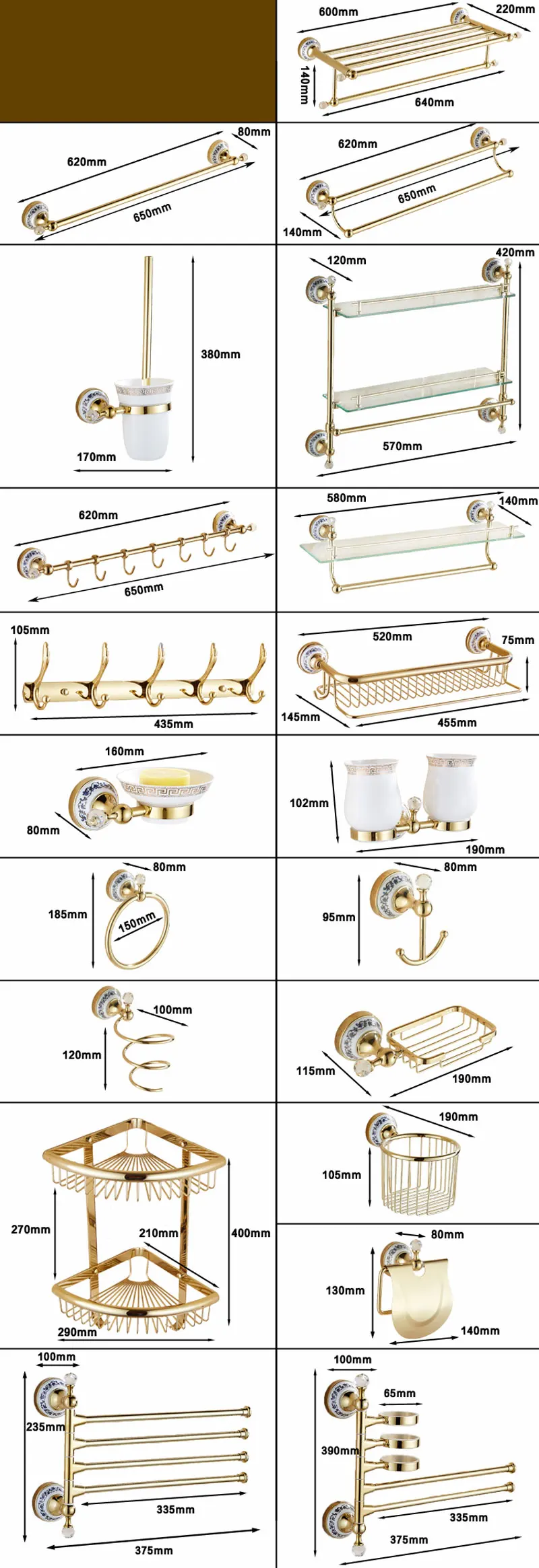 European Antique Blue and White Porcelain Chrome Finish Bathroom Hardware Set Silver&Crystal Towel Rack Bar Hook Basket Rack 5