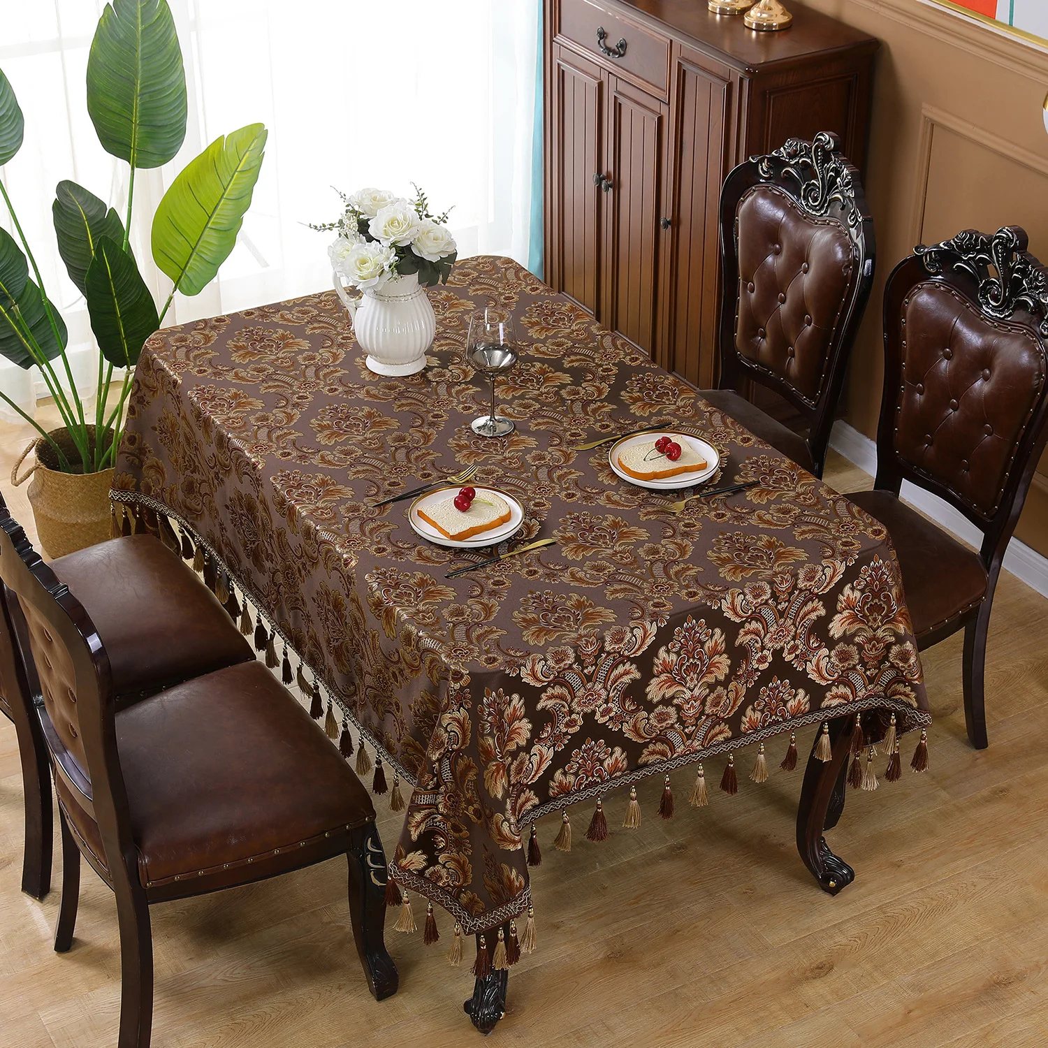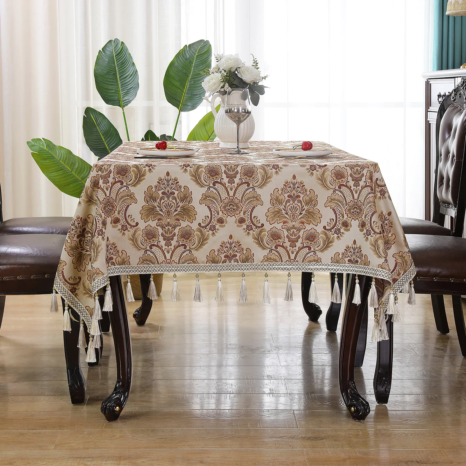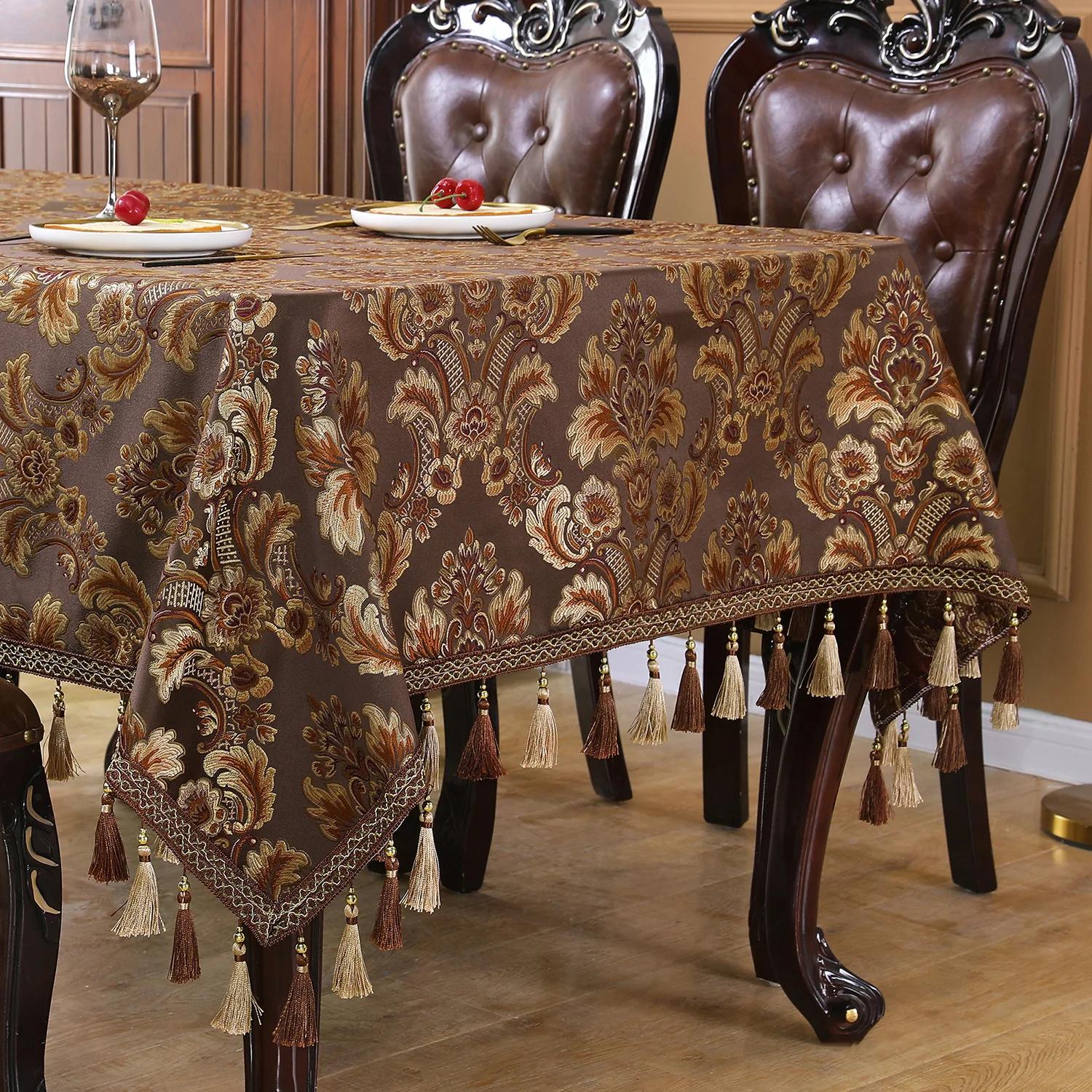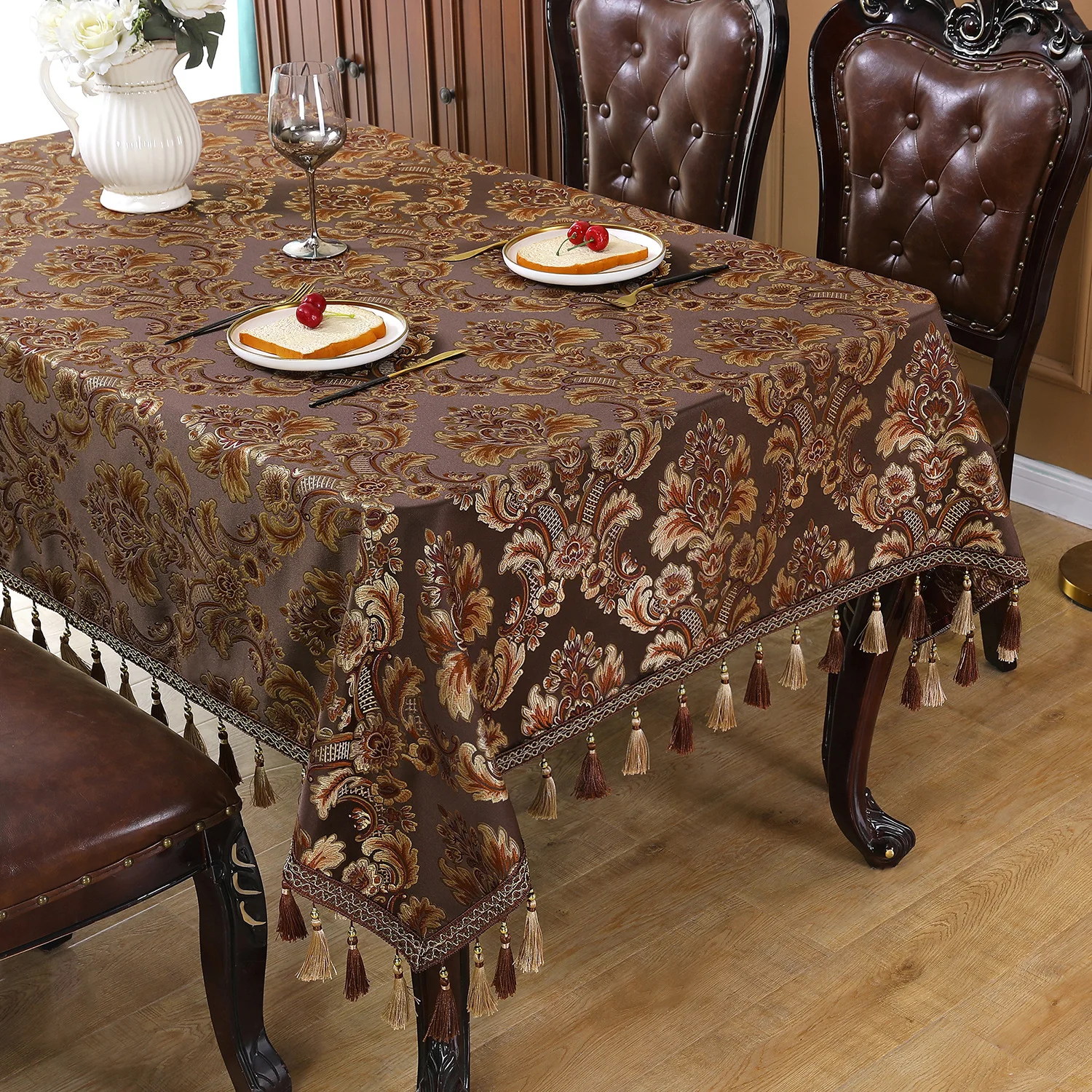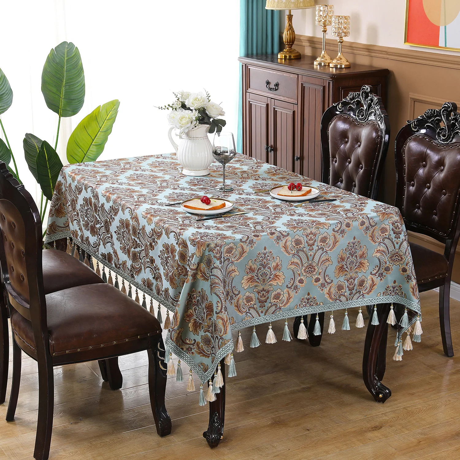 European-style Palace High-density Embroidered Jacquard Tablecloth Vintage Tassel Tea Table Cloth Chinese-style Satin Tablecloth
