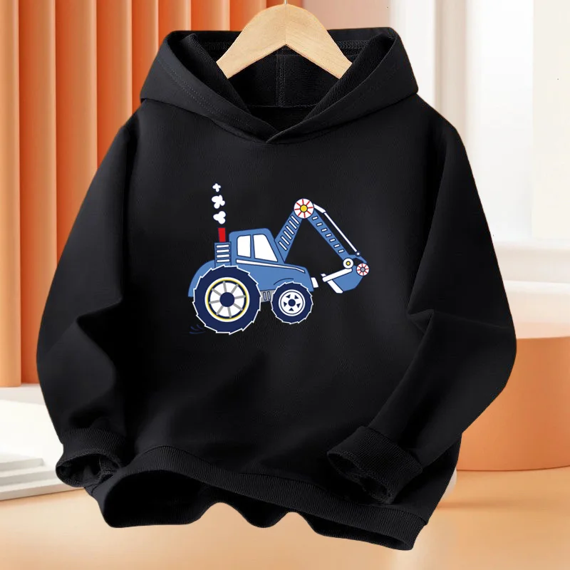 Excavators Hoodie Kids Baby Boys Long Sleeves Pullover Sweatshirt Children Clothing Locomotive Cotton car Tops