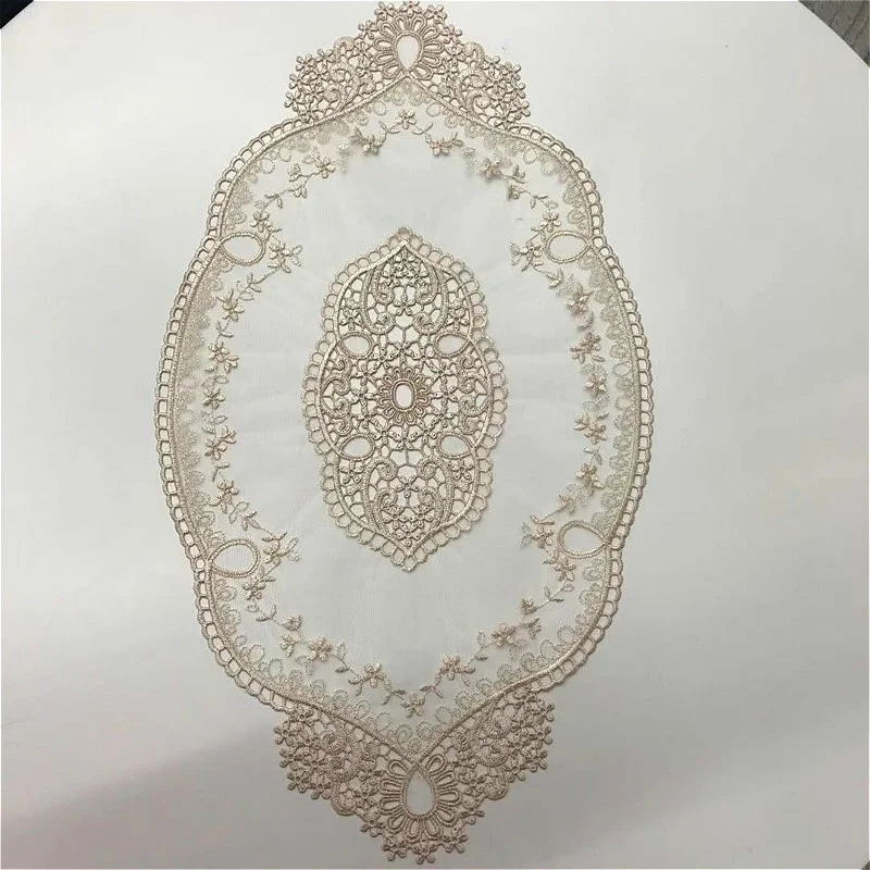 Exquisite European Oval Embroidered Table Mat Dining Placemat Coffee Tea Party Computer Sofa Armrest Cover Wedding Decoration