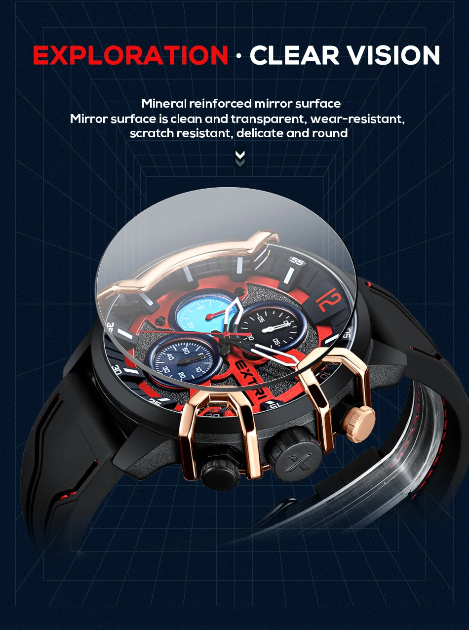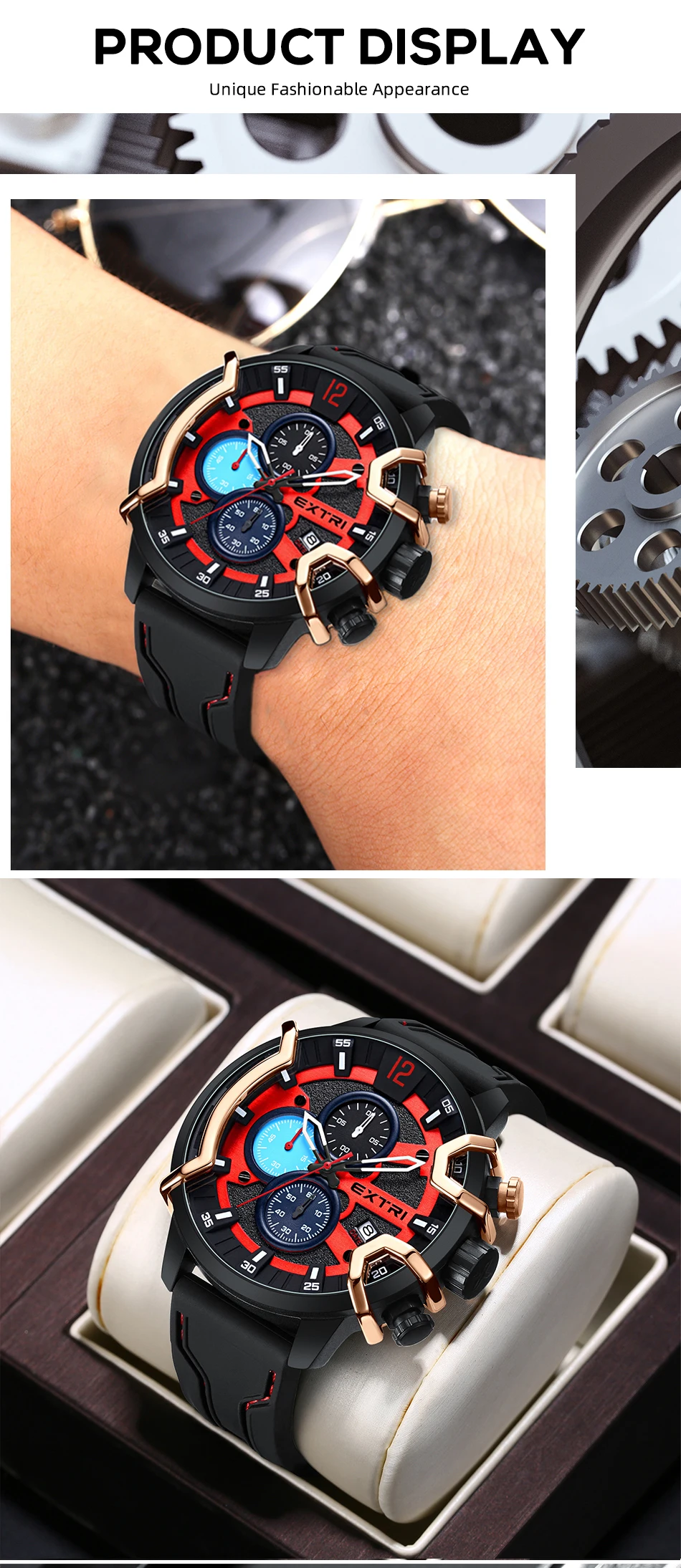 EXTRI Fashion Men Sports Watches Luxury Male Military Silicone Quartz Wrist Business Chronograph Calendar Waterproof Mens Watch