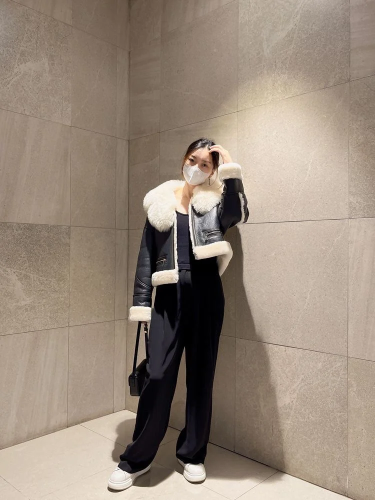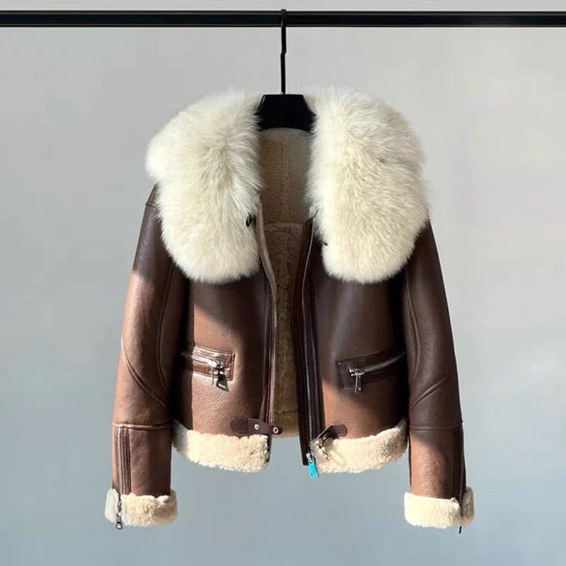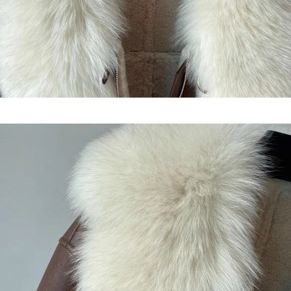 Fantfur Winter Coat For Women 100% Fox Fur Collar Merino Sheep Double-faced Fur Solid Thick Warm Jacket