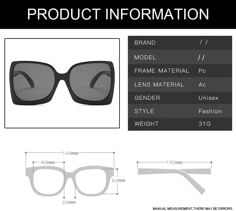 Fashion Oversized Sunglasses Woman Brand Designer Plastic Female Big Frame Gradient Sun Glasses Square Clear Oculos De Sol