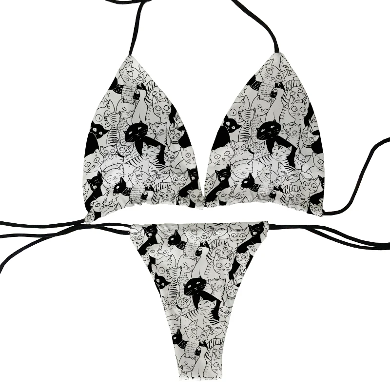 Fashion Sexy Bikini Suit Female New Japanese Anime Printed Swimsuit Two-piece Beach Bikini Female Push-up Beach Vacation Cosplay