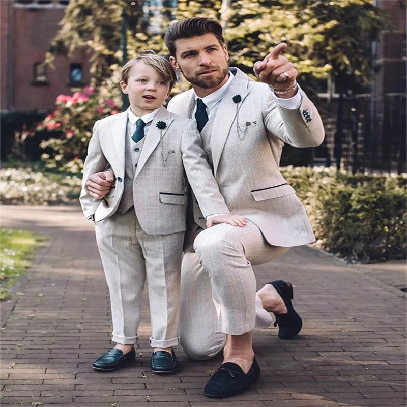 Father And Son Suits 3-piece Custom Made Light Gray Cotton Blend Formal Blazer Notched Lapel Men Suits For Father And Son