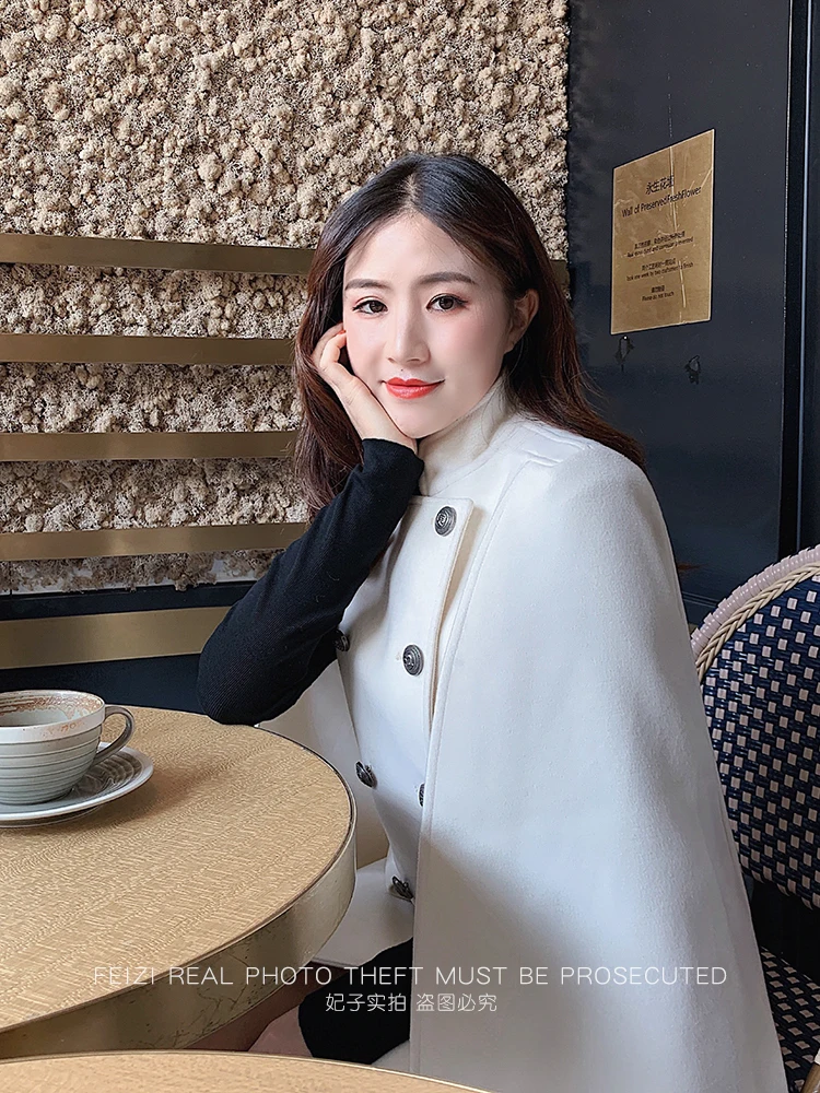 FEIZI~Pure White Moonlight~Cloak Woolen Coat Women’s New 2022 Autumn/Winter White Shawl Woolen Coat