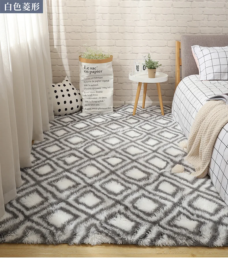The home bedroom carpet is colored by reactive printing and dyeing, durable and not faded, not easy to shed hair, high quality plush, plastic anti-skid bottom!