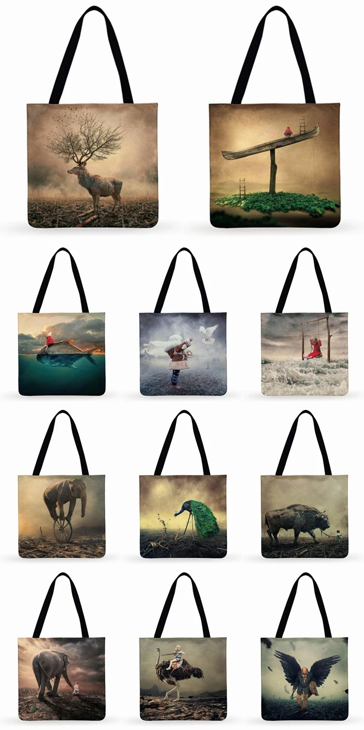Foldable Shopping Bag Human And Nature Art Image Print Tote Bag For Women Casual Tote Bag Ladies Shoulder Bag Outdoor Beach Bags