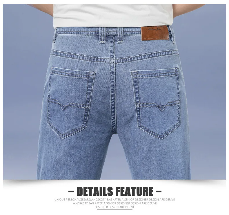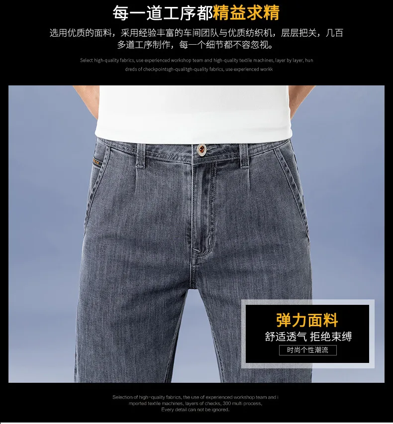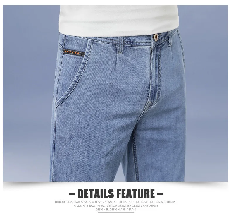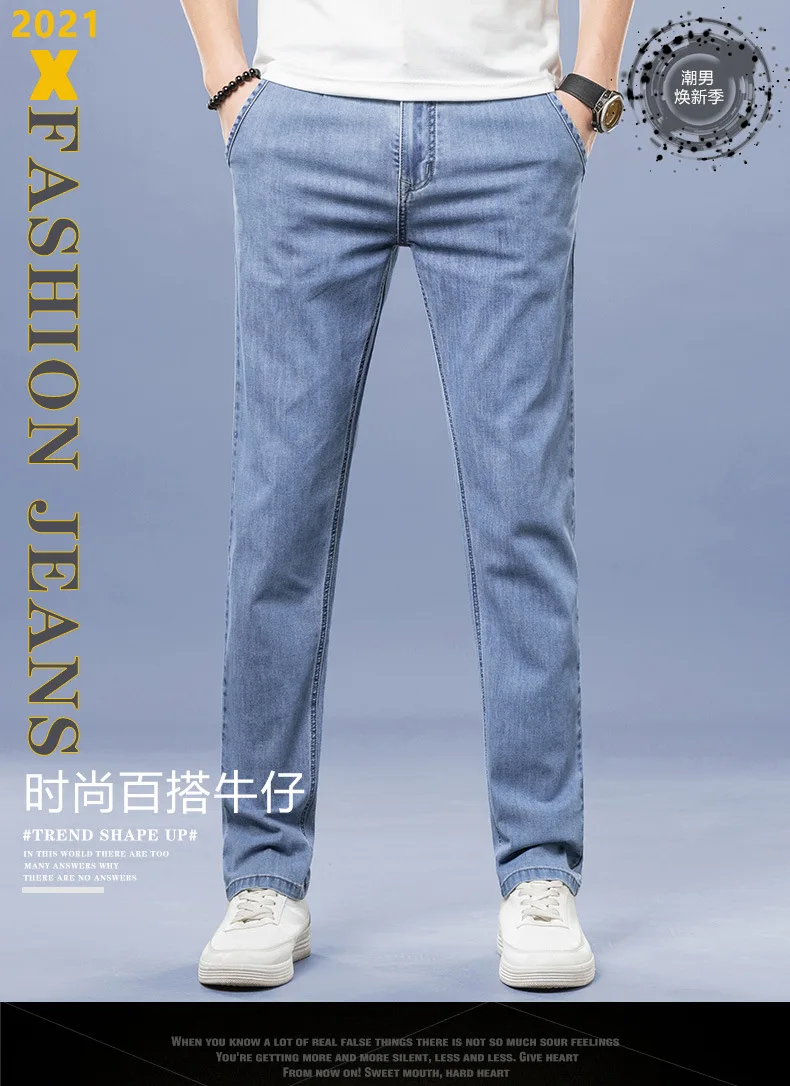 Free Shipping 2023 Men’s Summer Thin Mid Rise Straight Leg Jeans Elastic Loose Youth Business Casual Pants