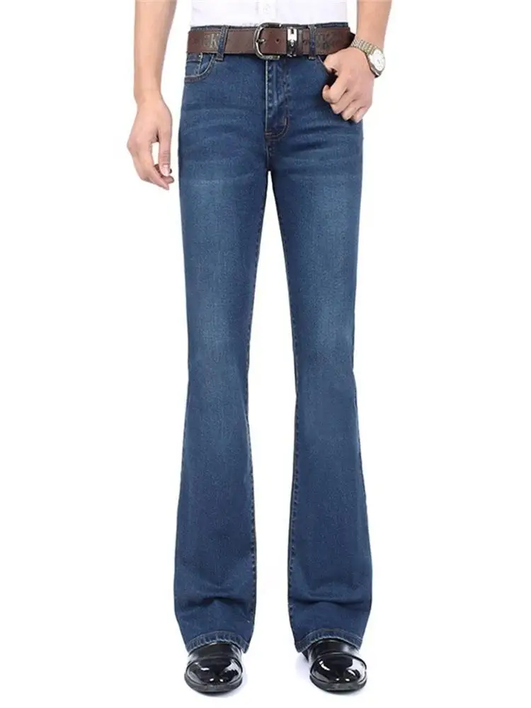 Free Shipping 2023 New High Quality Men Winter Warm Fleece Boot Cut Jeans Business Casual Flare Pants Mid Waist Velvet Trousers