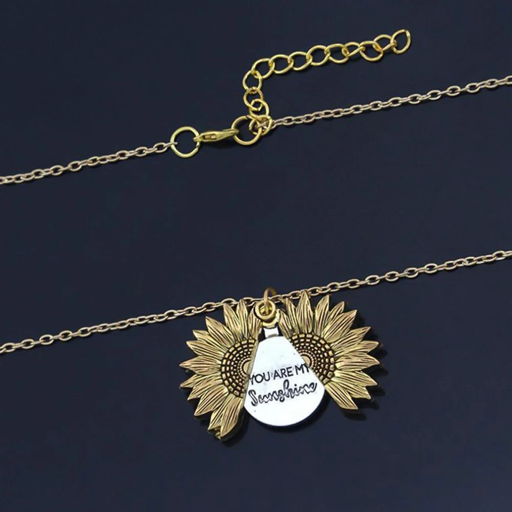 FSUNION Fashion Necklace Custom You Are My Sunshine Open Locket Sunflower Pendant For Women Men 2024 Jewelry Gifts