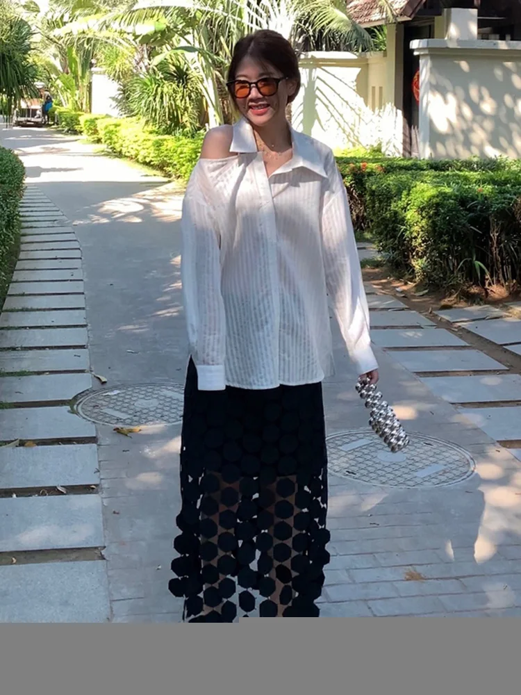 GALCAUR Elegant Dot Patchwork Tassel Skirt For Women High Waist Solid Midi Skirts Female Fashion New Clothing 2023 Clothing