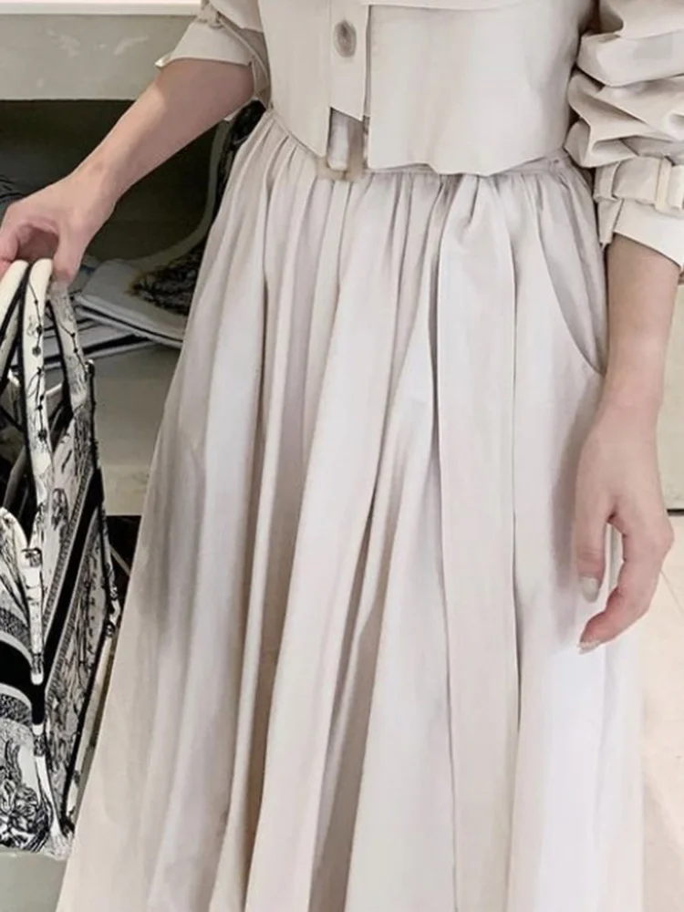 GALCAUR Patchwork Drawstring Skirts For Women High Waist Loose Folds Temperament A Line Korean Maxi Skirt Female Summer Clothes