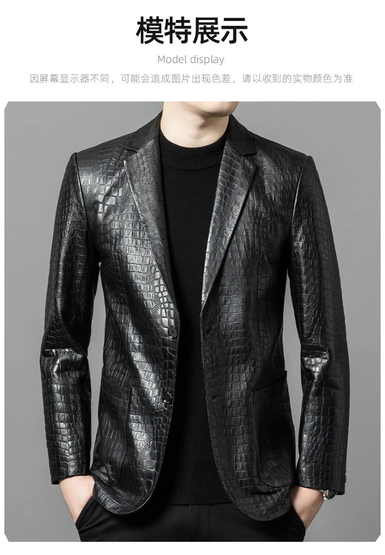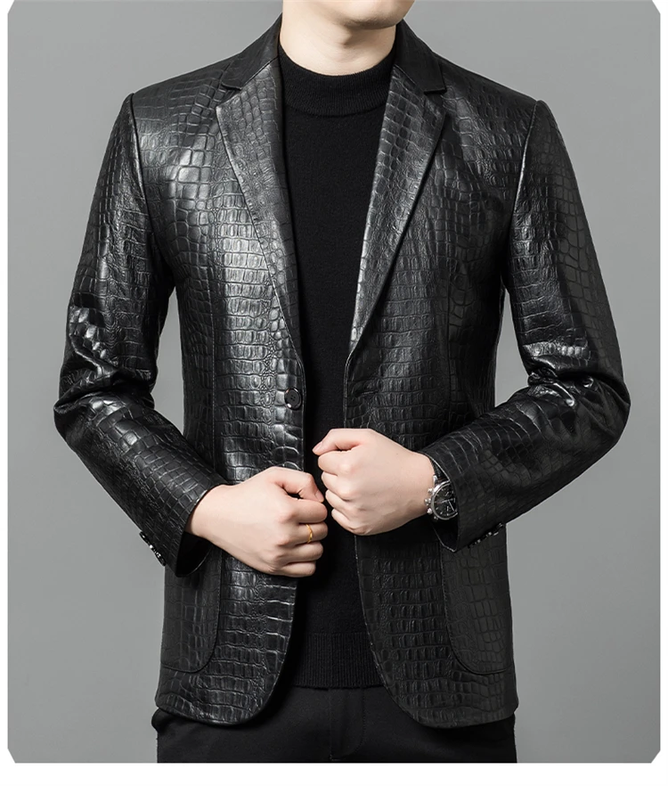 Gentleman Premium Sheepskin Blazers For Men Slim Leather Jacket Winter High Quality Business Casual Oversize 5XL Terno Masculino