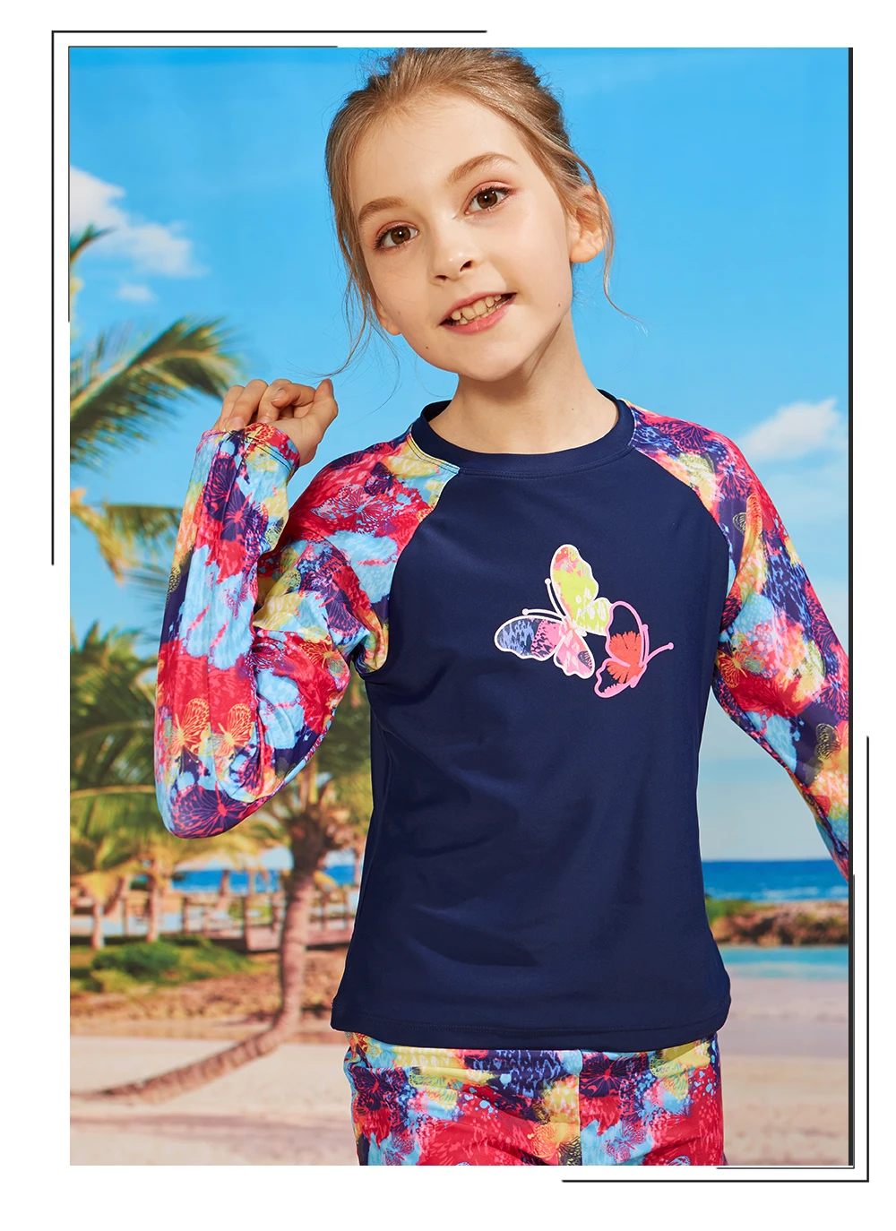 Girls’ Long Sleeve 2-Piece Rashguard Swimsuit Bathing Suit UPF 50+ Sun Protection Swimwear Print for Kids 3-14 Years
