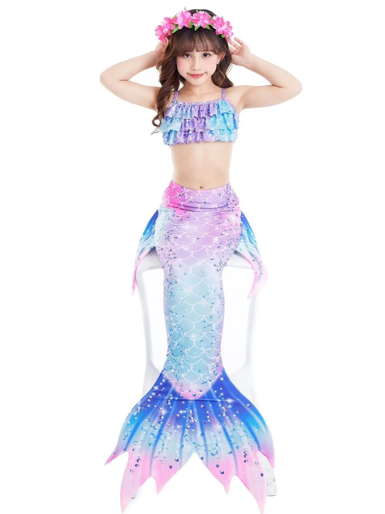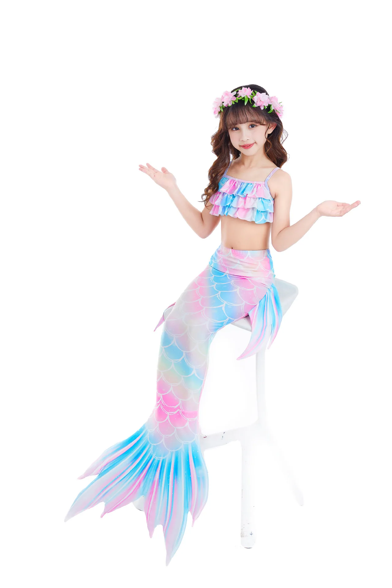 Girls Mermaid Tails Swimming Dresses Halloween Cosplay Costume Beach Clothes Child Mermaid Swimsuit Kids Swimmable Costume Fin