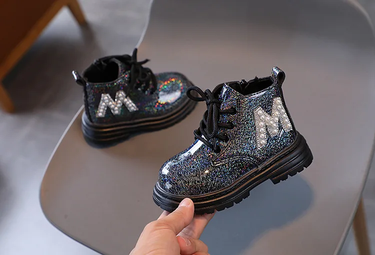 Girls Short Boots New Autumn Winter Shiny Pearls Single Boots Little Boys Fashion Ankle Boots Pink White Black Boots Kids Shoes