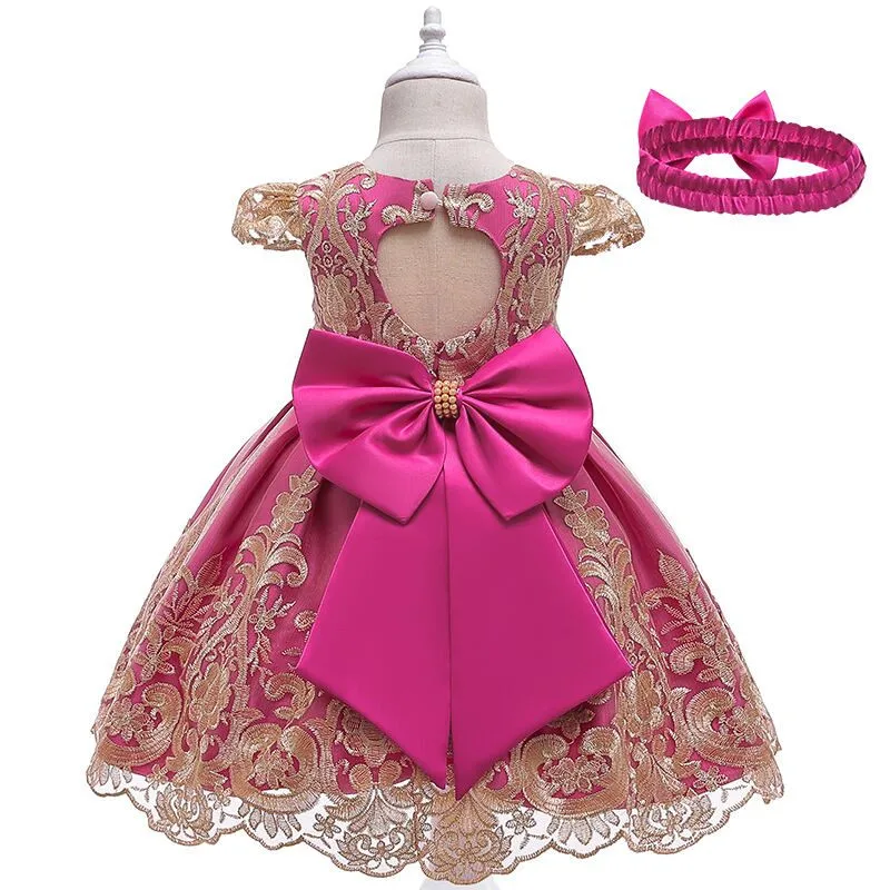 Girls Summer Baby Girl Dress Embroidery Palace Style Birthday Party Dress Elegant Princess Dress Send headband Children Clothing