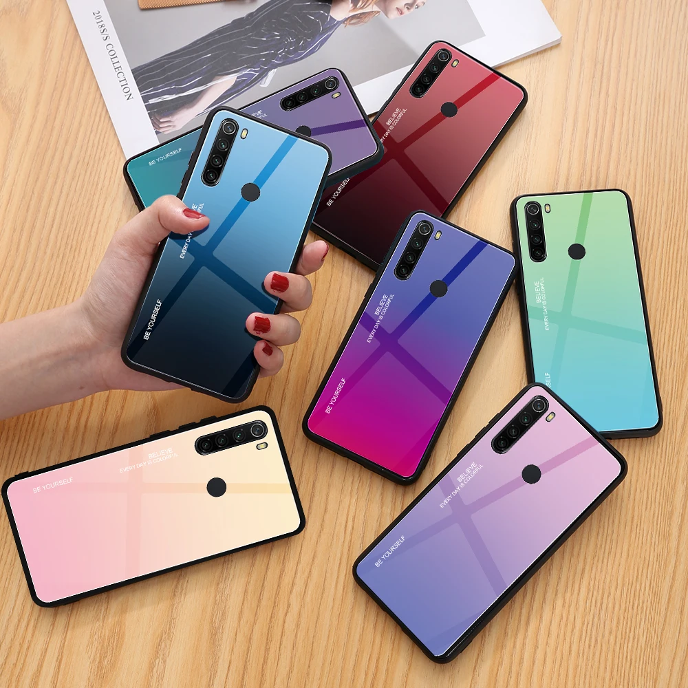 Gradient Tempered Glass Case For Xiaomi Redmi Note 10 9 8 Pro 9S 8T TPU Frame Protective Cover