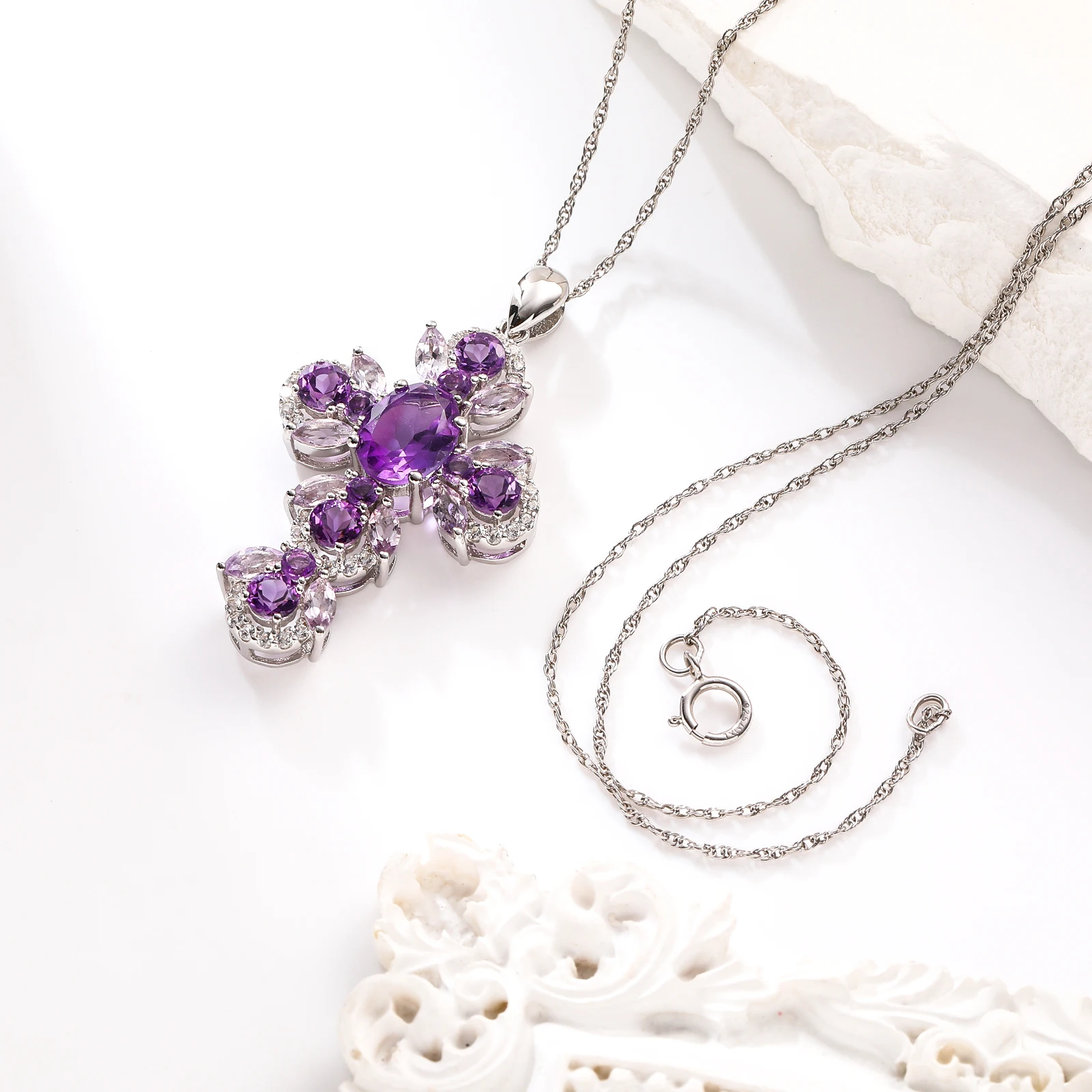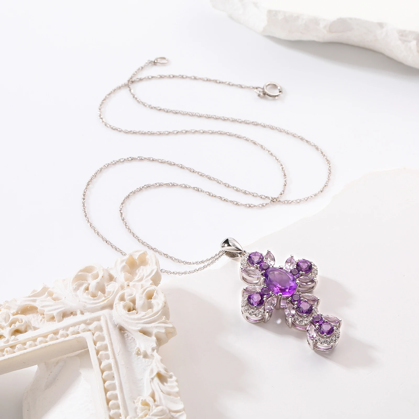GZ ZONGFA Purel 925 Sterling Silve Cross Pendant for Women 2.8ct Gems Natural Amethyst Chain Necklace Party Fine Jewelry