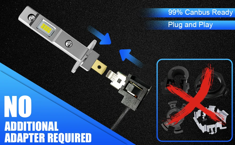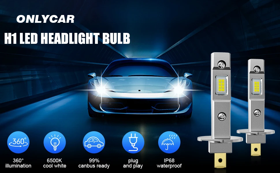 【Easy Installation】 H1 LED features an all-in-one wireless compact design, 1:1 mini size as halogen stock bulbs. Non-polarity design.real plug and play.