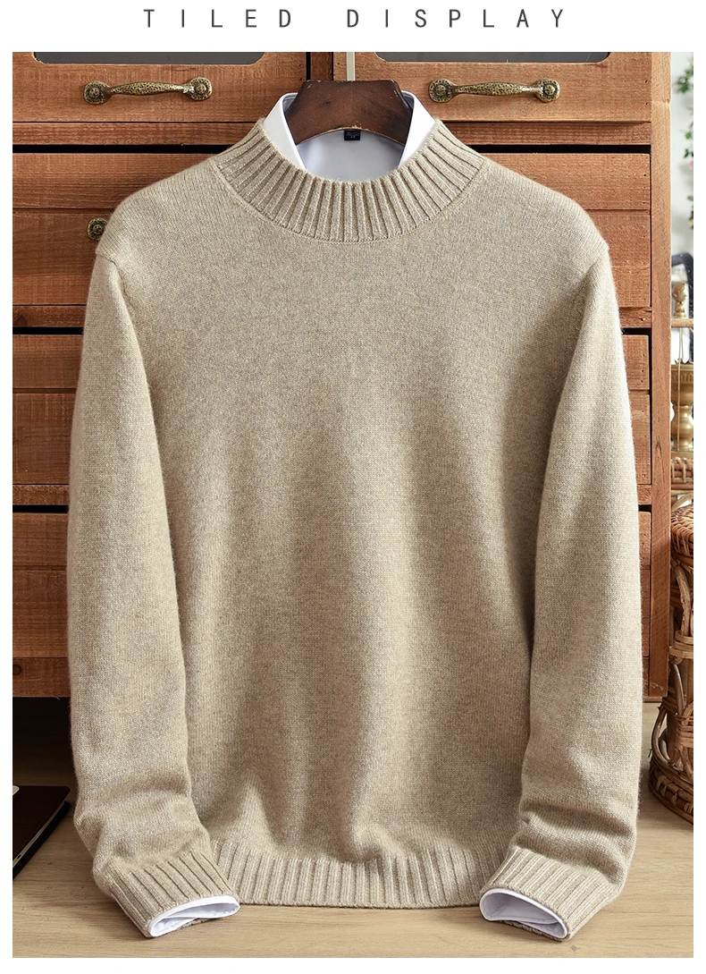 Half High Collar Pure Cashmere Sweater Men’s Double Strand Thickened Pullover Korean Edition Solid Color Winter Warm Sweater