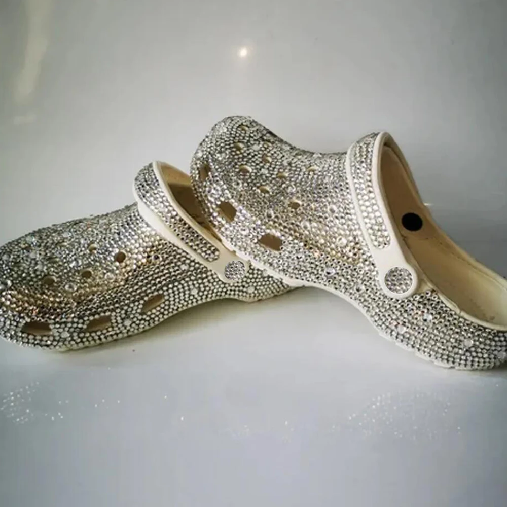 Handmade Rhinestones Bling Girls Womens Kids And Mother Summer Hole Sandals Garden Beach Slippers Sandals Quick Drying Shoes